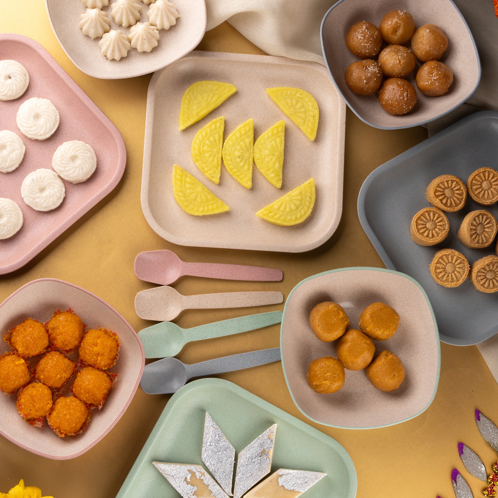 - 4 pcs Rice Husk 8" Snack Plates: Serve your favourite appetizers and snacks on these eco-friendly plates, designed to be both stylish and sustainable.